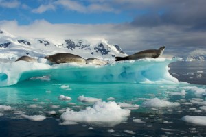 Caption: Crab Eater Seals On Iceberg